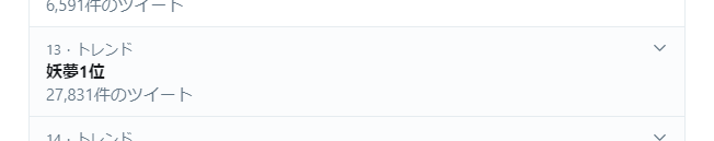 (速報版ですが)魂魄妖夢さん1位獲得とトレンド入り、おめでとうございます!