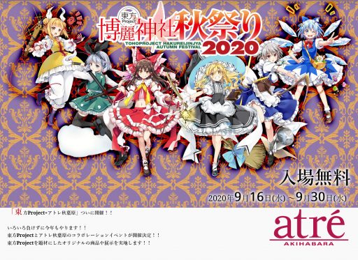 매년 개최되는 동방 Project X 아트레 아키하바라의 콜라보 이벤트 「하쿠레이신사 가을축제」가 9월 16일~30일의 일정으로 개최됩니다.