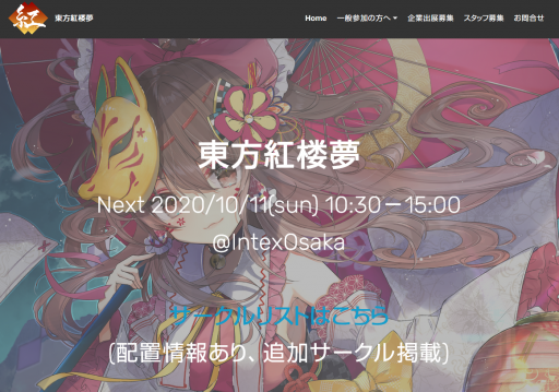 【代表】— 東方紅楼夢実行委員会@10/10インテ (@koromu_th) September 8, 2020