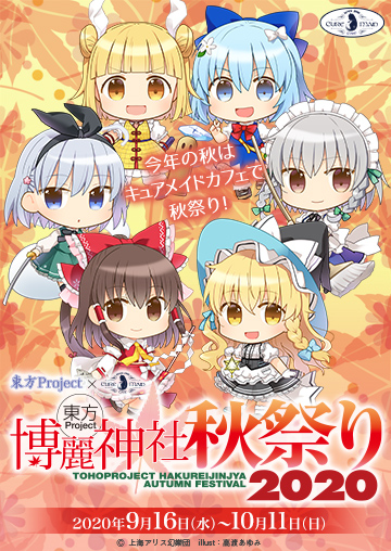 「博麗神社秋祭り2020」開催予定です! 続報お待ちください! やるぞーー!!(ただし、情勢により変動しますこと、ご了承ください)#東方Project #東方https://t.co/Bf1fIzpxHwコラボカフェも仕込んじゃいました!https://t.co/AlgdxMyrKA pic.twitter.com/zoYqSyr1Sf