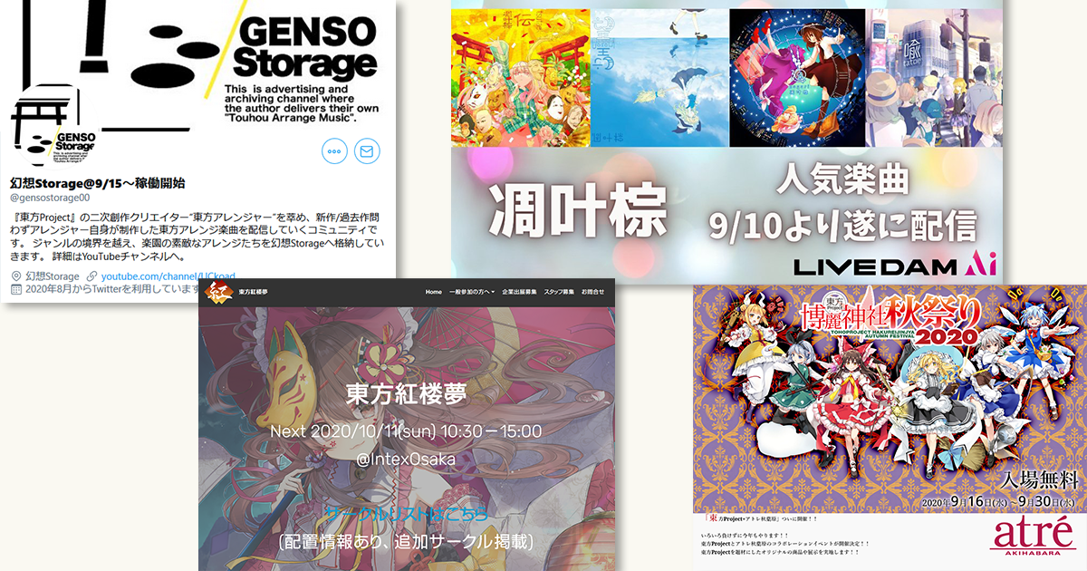 新作/過去作問わず自身が制作した東方アレンジ楽曲を配信していく東方アレンジ楽曲コミュニティ「幻想Storage」を開設致します。https://t.co/eB9rAl43bj #幻スト #東方Project— 幻想Storage@稼働開始!! (@gensostorage00) September 5, 2020